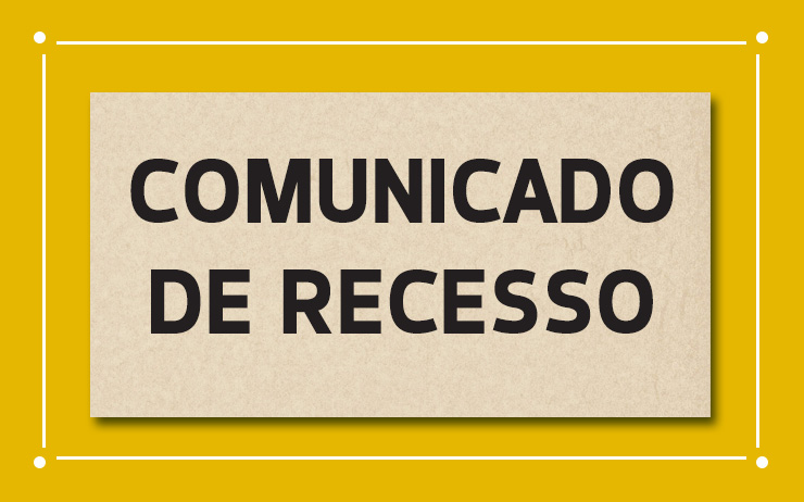 Informamos que, de 21 de dezembro à 05 de janeiro, estaremos em recesso. Retomaremos as atividades em 06 de janeiro de 2020. Filie-se ao seu Sindicato, juntos somos mais fortes!