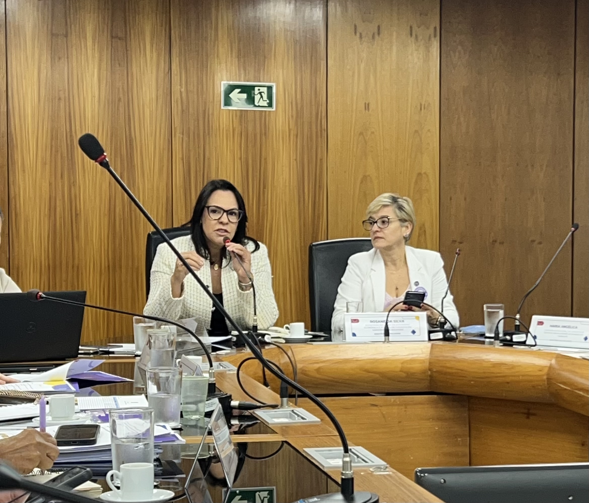O fórum teve a presença da ministra das mulheres, Márcia Lopes, e foi coordenado pela secretária do Ministério das Mulheres, Rosane Silva, e contou com a participação de representantes das centrais sindicais. A diretora do SINTTEL-SC, Gisele Benthien, representou a UGT Brasil, além de Maria Edna Medeiros, do SINTETEL SP, e Ana Katia Garcês di SINTTEL-GO.