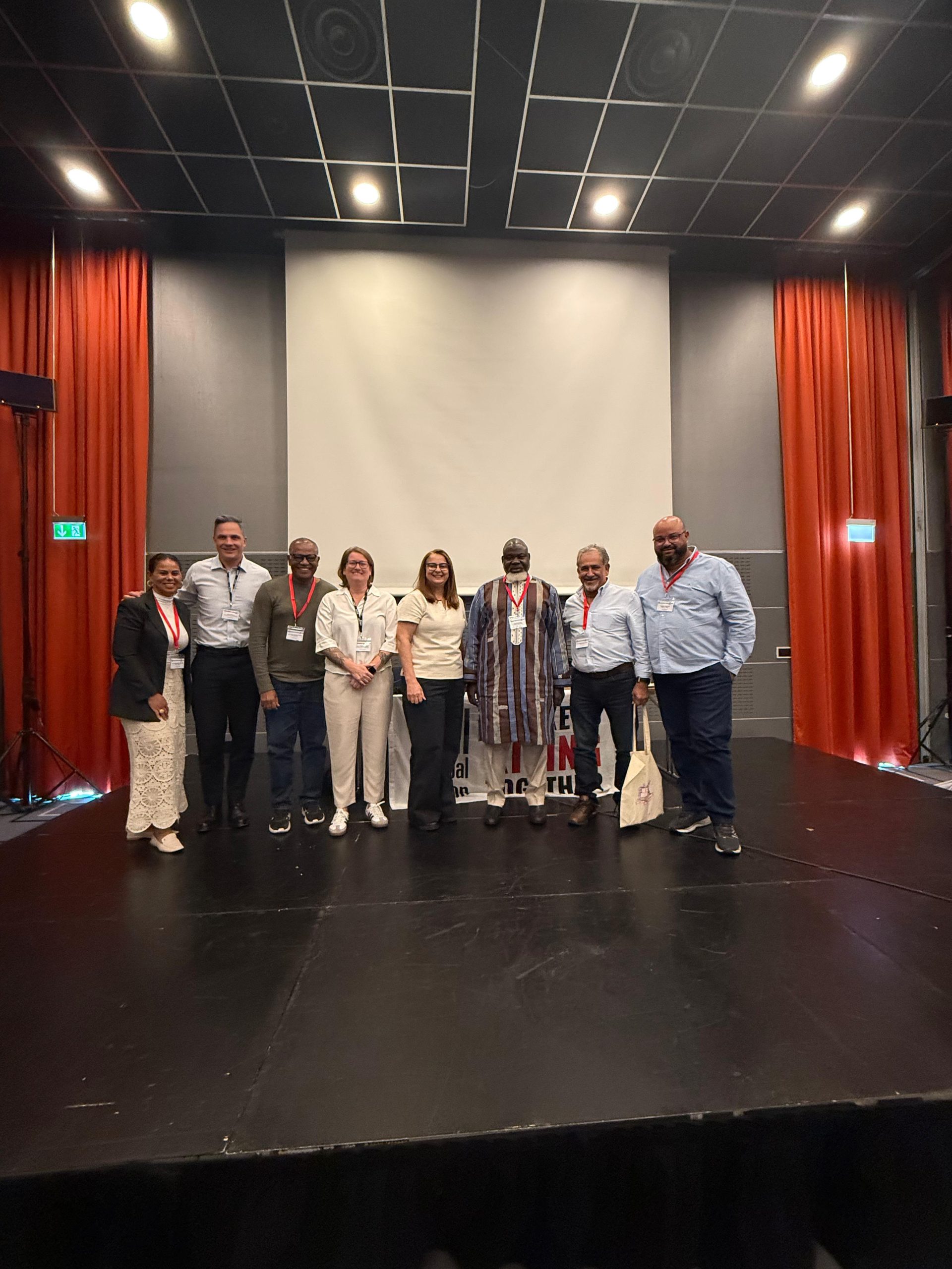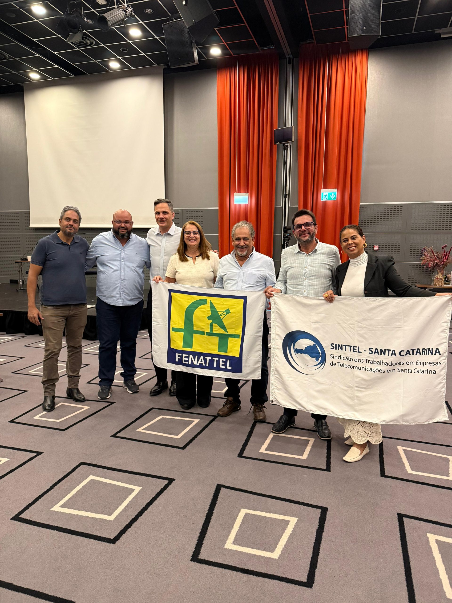 A delegação brasileira foi composta por Rogério Soares, presidente do SINTTEL-SC; Gabriela Cordeiro, diretora do Sinttel-SC; Gilberto Dourado, presidente do SINTETEL; Cristiane do Nascimento, vice-presidenta da FENATTEL; e Divino da Silva e Fagner Tavares, do Sinttel-GO.