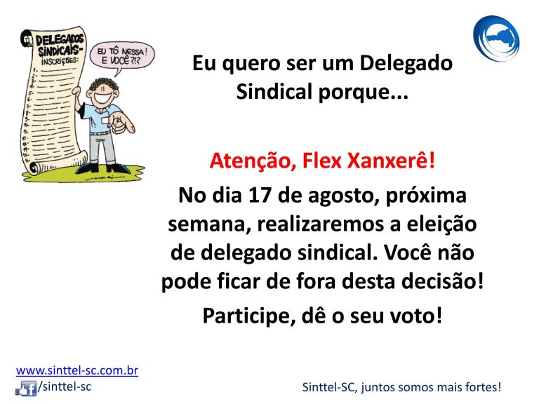 Está chegando a hora da Flex Xanxerê ter um delegado sindical! Na próxima semana, em